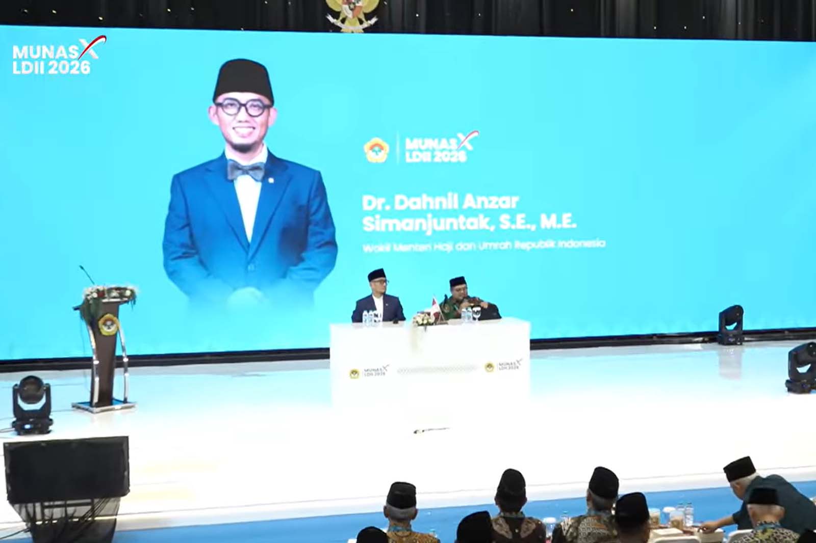 Jakarta (9/4). Wakil Menteri Haji dan Umrah, Dahnil Anzar Simanjuntak, memaparkan transformasi tata kelola perhajian Indonesia dalam gelaran Musyawarah Nasional (Munas) X LDII yang berlangsung di Pondok Pesantren Minhajurosyidin, Jakarta Timur, Kamis (9/4/2026). Dalam kesempatan tersebut, Dahnil mengapresiasi karakter warga LDII yang dikenal melalui tradisi “ngepel masjid” sebagai simbol nilai keteraturan, kedisiplinan, dan kebersihan. Menurutnya, karakter ini merupakan bentuk creative destruction untuk membalikkan stigma negatif menjadi identitas positif yang kuat di tengah masyarakat.